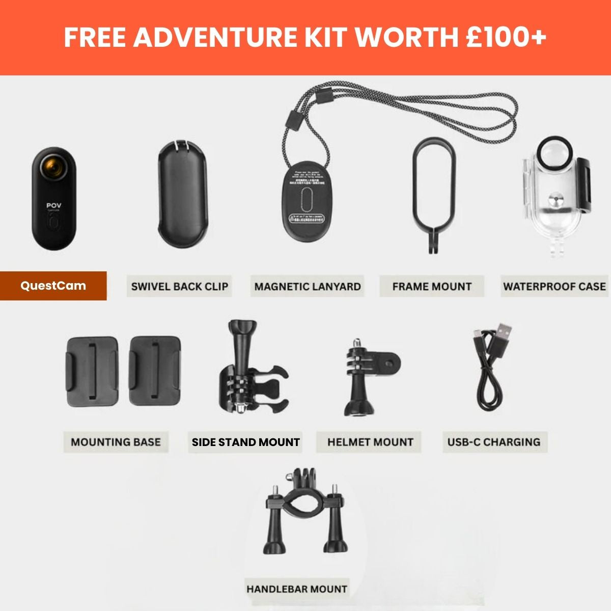 This winter, we want you hitting the slopes and trails immediately, without waiting for costly extras. For a limited time only, when you purchase the QuestCam™ 4K, we are including the Complete Winter Adventure Kit—a $100+ value—at absolutely no extra cost.